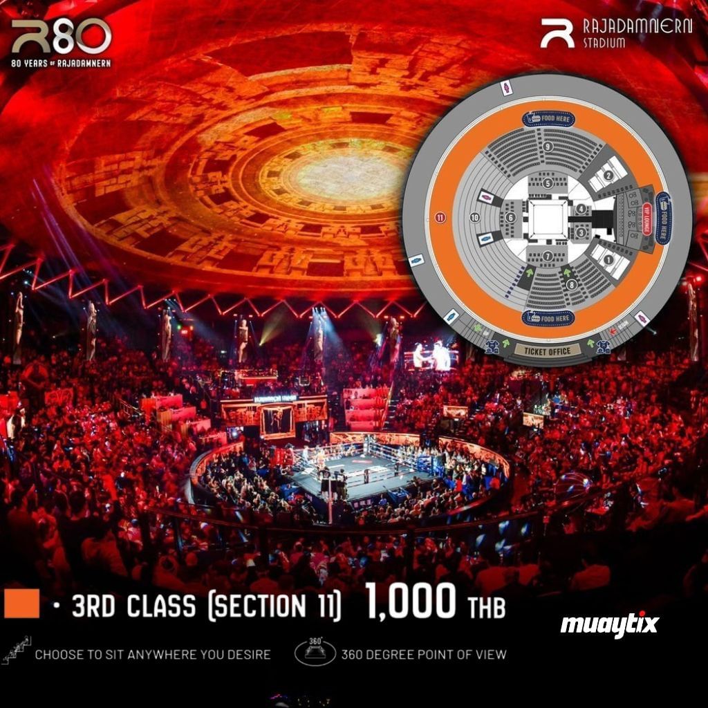 Step into Rajadamnern Stadium, the beating heart of Bangkok’s Muay Thai heritage. Every Sunday night, the arena comes alive for Kiatpetch Muay Thai, one of Thailand’s most respected promotions showcasing elite fighters from across the nation.